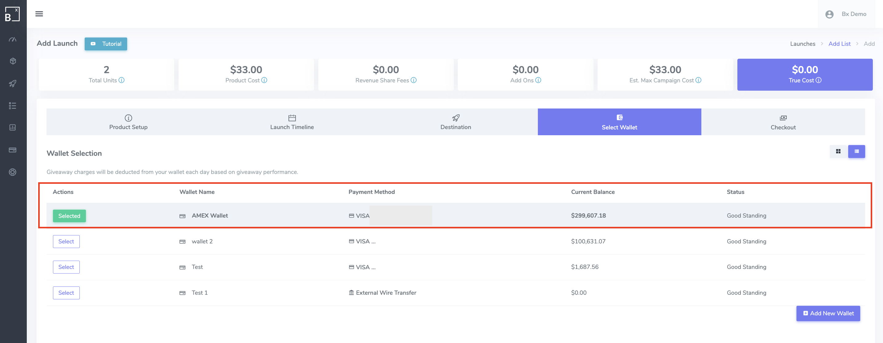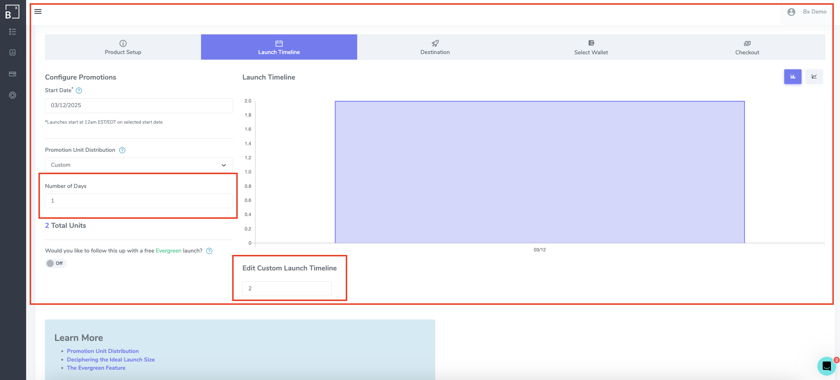 3. You will be redirected to the first step of creating a launch, but this time, it will be an exact clone of the previous launch. This will include number of days, launch timeline, launch subtype and wallet.