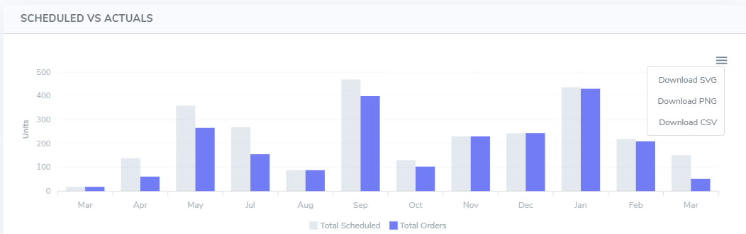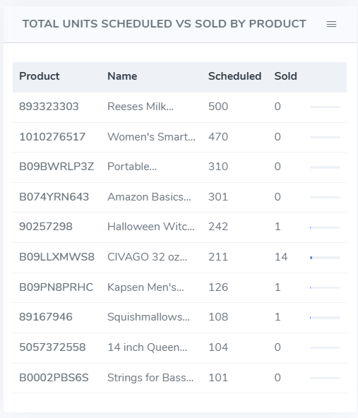 Total Units Scheduled Vs Sold By Product