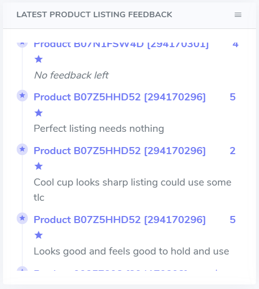 Latest Product Listing Feedback