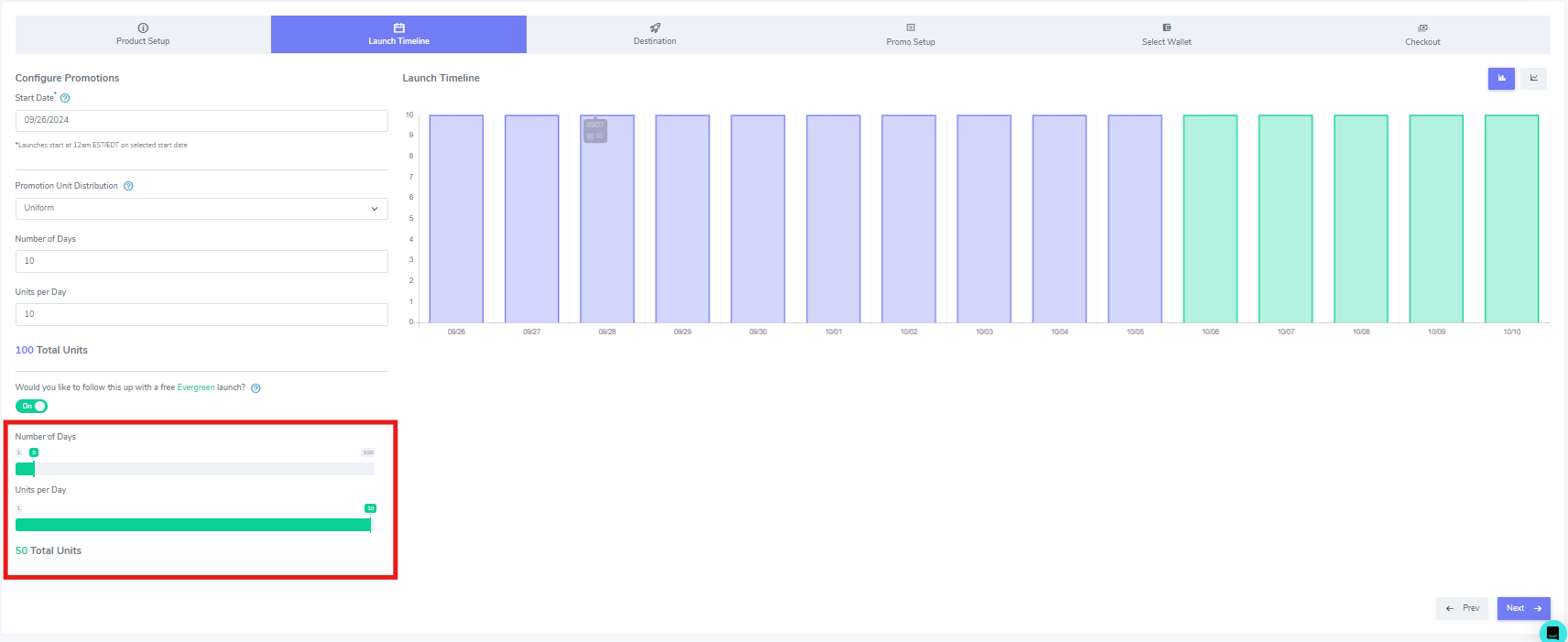 Evergreen extends your launch for up to 100 days, enabling 1-10 units per day—up to a maximum 50% of your initial promotions. This ensures a gradual transition to organic sales while preventing sudden traffic drops.