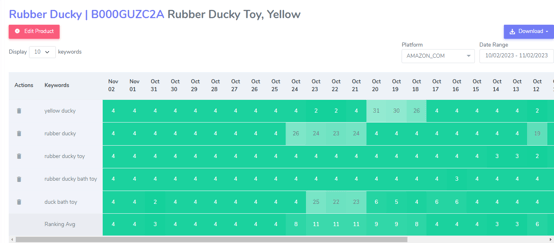Note: Our system will only return ranking data for the top 250 positions. If your product ranks over 250 or you have variations then you might see a dash (-) for that day.