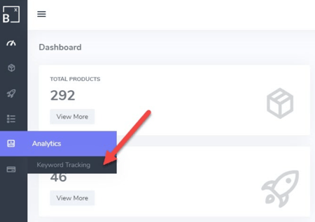 To begin tracking your product's keyword rankings, log in to your Brand Expand account, click "Analytics" in the left navigation panel, and select Keyword Tracking. This feature enables you to monitor the rankings of specified keyword(s) associated with your product(s).