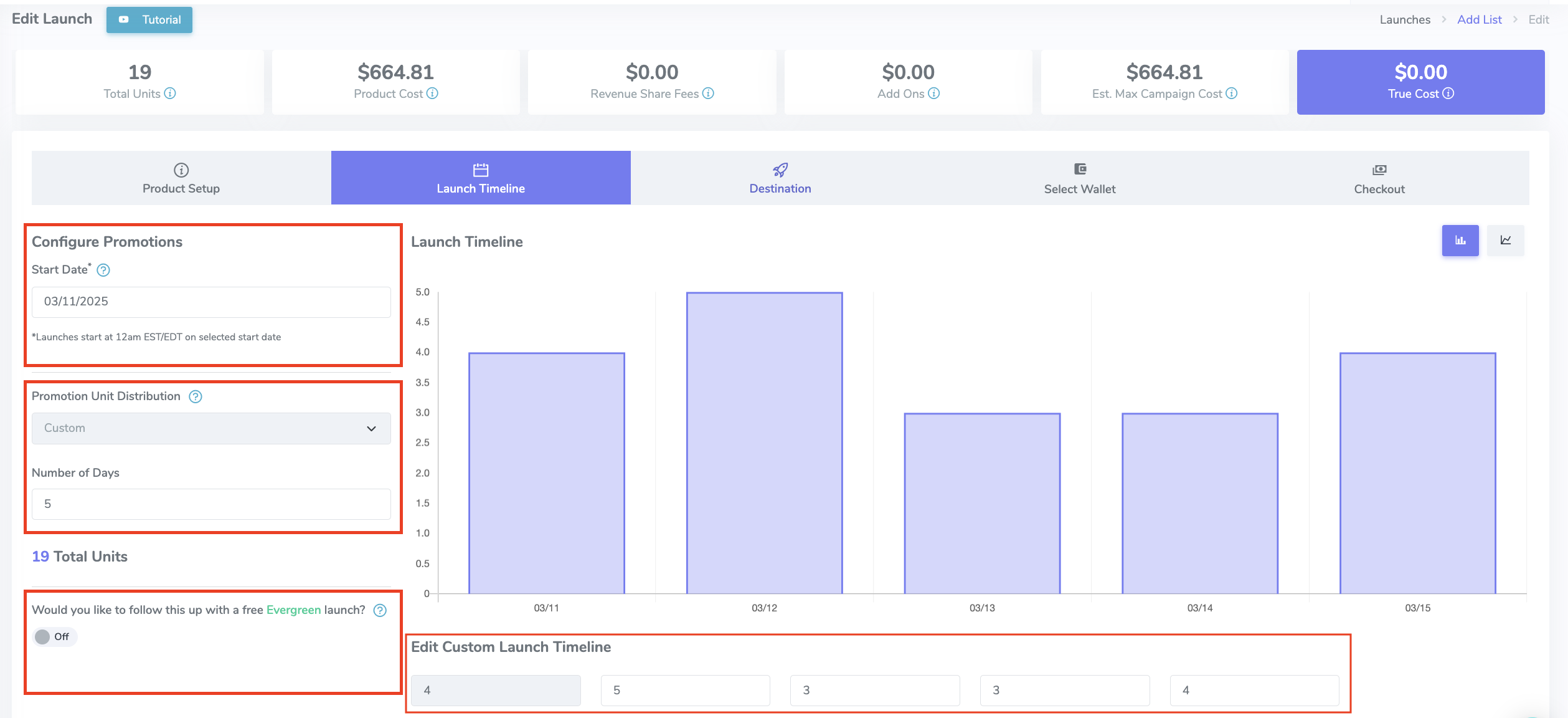 On Launch Timeline, select a start date and choose your maximum desired units for the launch campaign.