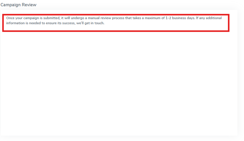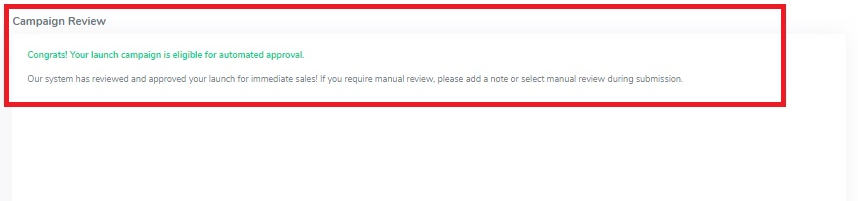 For all other marketplace launches, your launch campaign will be submitted for manual review by our team. A prompt will display stating: