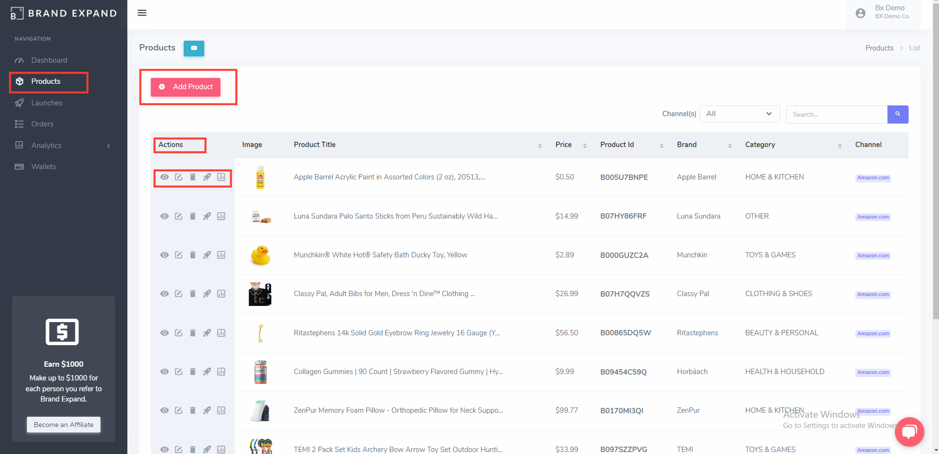 "Products" is the page where you can add products to your Brand Expand account by clicking on "Add Product", located in the upper right corner.