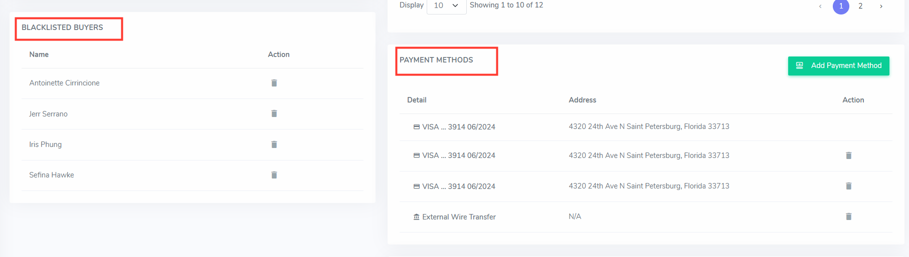 As you scroll down the "My Account" page, you will come across the sections for blacklisted buyers and payment methods.